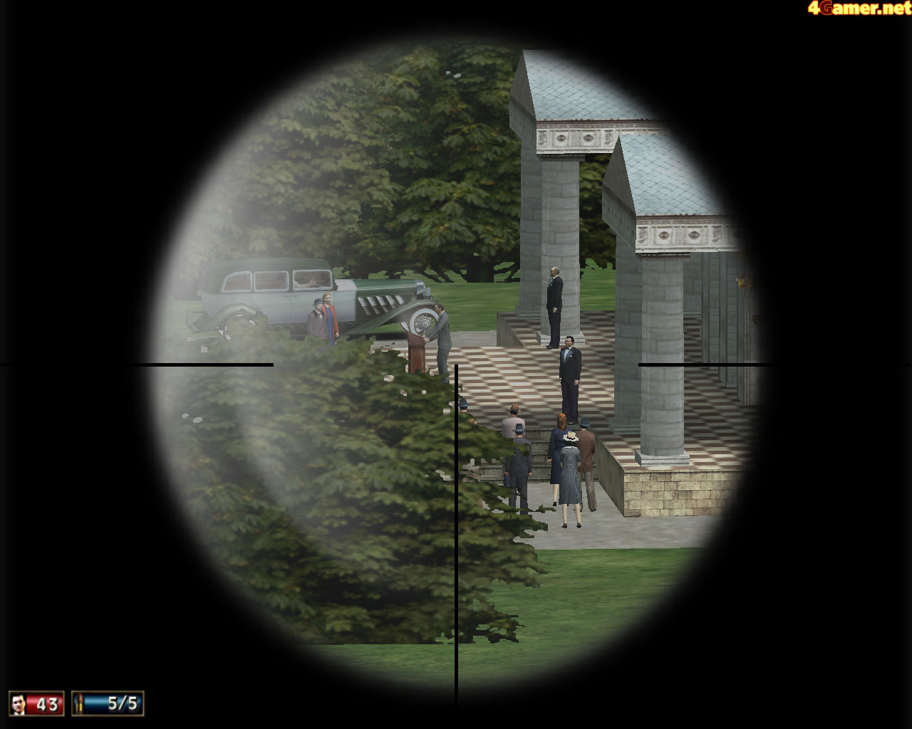 | 襲ってきたモレノの部下を皆殺しにしたトム。襲撃を受けても落ち着いているサリエリは,さすがドンだ | ターゲットに接近するため,変装して船に乗り込んだトム。これはけっこうきついミッションなのだ | 敵をライフルで狙撃するというミッションもある。撃つのは簡単だが,うまい狙撃位置につくのが難儀 |