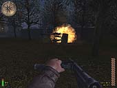 パラシュート降下は海岸からの上陸よりも容易に奥地へ侵入できる半面,最初から集結も補給もままならないというやっかいな危険性を孕んでいる。BoBでは主人公の一行が集結地点に到達したとき9割が行方不明だと告げられるが,「リロード」のバーンズ軍曹は案の定,行方不明側の9割に入ってしまったようだ。たった一人のバーンズ軍曹が着任する最初の任務は,対空砲を探し出して破壊することである。つい先ほどまで稲妻のごとき砲火を吐き出していた元凶に,さっそく逆襲のチャンスが訪れる。なんというか実に無駄のない脚本である。その後プレイヤーはイギリス軍と合流し,川を越えて奥へ奥へと進んでいく。全体的に,爆薬でいろいろなものを爆破させられるミッションだ。リー・エンティールド銃やステンmkIIといったイギリスの兵器が登場する。
