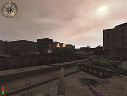 やる気のないソ連兵と,最後のベルリン攻略に挑む。ここでは狙撃兵に脅えながら,たった一人で瓦解したベルリンを徘徊することになる。とにかく最初から最後まで戦車づくめのミッション。中でもステージ丸ごとT-34に乗っての強行脱出というラストステージが圧巻で,行く手を阻む敵戦闘車両の壁を突破していかなければならない。T-34といえば大型ドラムマガジンのDTMマシンガンが有名だが,ここでは戦車砲とDTMマシンガンを上手に切り替えて立ち回る必要がある。というのも,このステージはパンツァーファウストをカマしてくるドイツ兵が戦車と同じくらい強敵だからである。最後は大多数が押し寄せる大戦車戦が待ち受けている。それほど長いミッションではなく,前作の基地脱出より難度的にもはるかにラクだといえる。