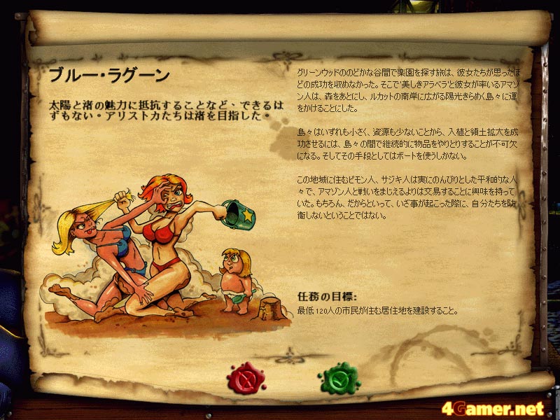ネイションズは,のどかな惑星ルカットを舞台にピモン族,アマゾン族,サジキス族という前作でもお馴染みの3種族が登場する。いずれも非常に個性的な種族なので,どの種族を選択してもすぐに愛着が沸くことだろう。例えばアマゾン族はチョコレートが大好きで,セクシーな女性が働き,ムキムキマッチョな男性が家事をし暇なときにはボディビルのようなポーズをキメる,という具合だし,ゴキブリ(?)に似た昆虫種族であるサジキス族は,欲張りで食料への執着心が強く,また重要なポストを決めるときはホラ吹き大会を催すといった具合なのだ。