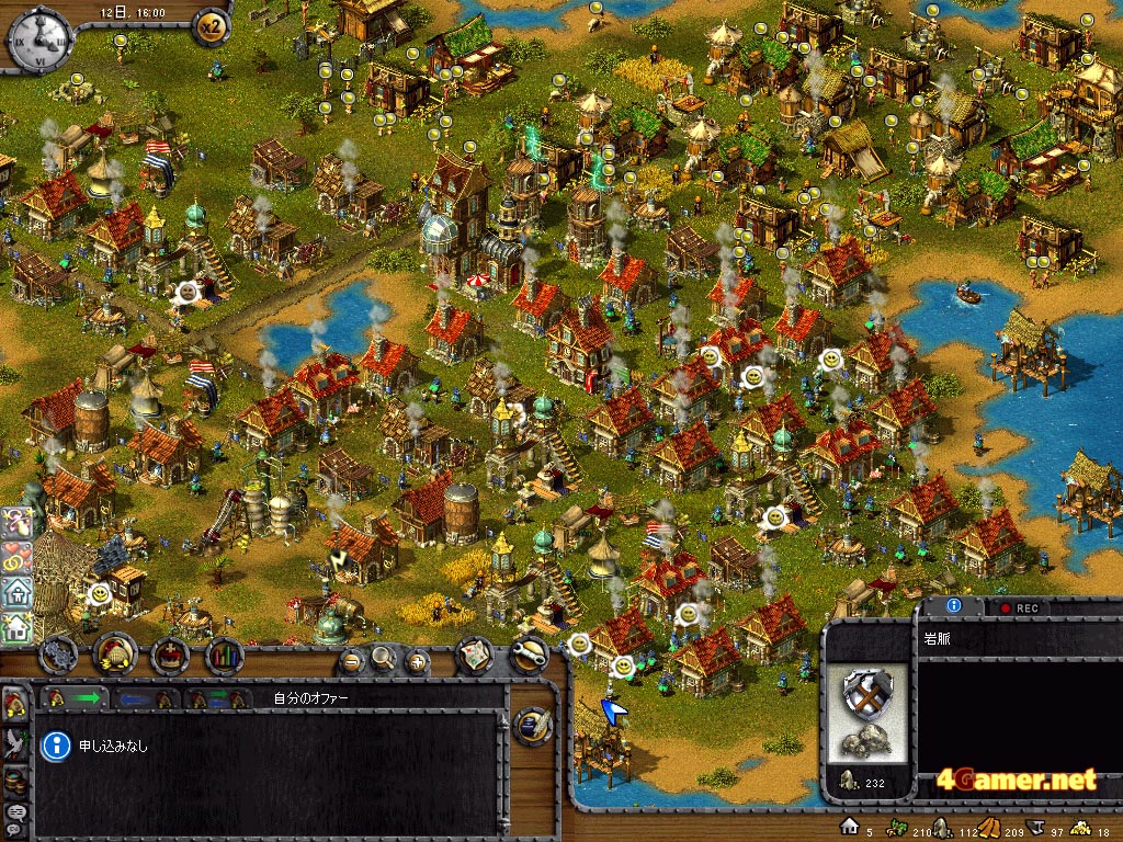 ゲームは,ほんの少しの建築物と少人数で構成された村から始まる。プレイヤーは住民達の欲求を満たしつつ,教育し,職や住居を与え,食欲を満たし,さらに信仰によって神のご機嫌も伺いながら,ミッションごとに設定された目標に向かっていくのだ。当然ながらやっかいなのが,ほかの種族の存在。平和的に共存するもよし,あるいは敵対するもよし。いずれにしても町の発展,交易や戦争など,社会を潤滑に形成していくうえで必要なことをプレイヤーが一手に担うのだから,町が発展するにつれてとんでもなく忙しくなるわけだ。