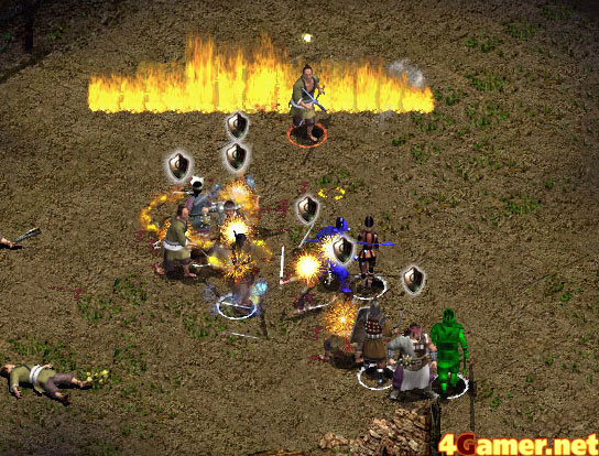 さて戦闘が始まれば,プレイヤーがなんの指示も出さなくても,キャラクター達は自動で近くの敵に襲いかかり,相手を倒すまで戦い続ける。が,彼らは自分が攻撃されるまでは相手を敵とみなさないのか,少し離れた場所の敵は(例え仲間が襲われていても)無視してしまう。そのため,効率よく戦うためには,プレイヤーの指示は必須である。