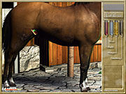 スターがベストの状態になったら,いよいよチャンピオンシップの大会に出場だが,その前にやることが一つ。タックルームにある引き出しの中から,ボディブラシなどの身だしなみセット(これもひとつ一つ出し入れする)を持ってきて,スターをキレイに整えてあげよう。ボディブラシで汚れを落とし,たてがみと尻尾をブラッシングする。そして蹄に油(蹄油)を塗り,万全の体制で大会に挑戦したい。地味な作業だが大会では馬の身なりも重要なポイントになり,汚れた体ではマイナス評価となってしまうのだ。