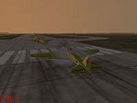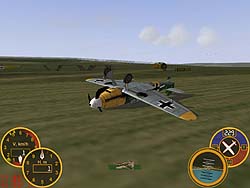 しかも私のようにほかのフライトシミュレータ作品と平行して遊んでいると,どのキー押すと何が起きるのかわけが分かんなくなって,どんどん墜落していくのである。合掌。つまりこれがいわゆる「リアリティ」と「ゲーム性」の宿命のせめぎ合いであるのだけど,「シュトルモヴィク」の飛行難易度はやや「難」に属するんじゃないかと思う。リアリティ優先というわけだ。たとえば離陸時に頭を左にふられるプロペラ効果に対しては,普通なら軽くラダーを当てれば収まるはずだが,その当て加減が非常に難しく,うっかりするとすぐに滑走路を飛び出してしまう。しかも,いったん飛び上がってギアとフラップを上げ,上昇に入ってからも,わずかに迎え角が大きすぎただけで墜落したりもする。離陸がこれだから,着陸は言わずもがな。フラップを離陸位置まで下げ,同時にギアを下げるのがセオリーなのだが,そうすると急に安定を失って,滑走路に正対し続けるのが非常に難しくなる。ほかのゲームでは目をつぶっても航空母艦の狭い飛行甲板に着艦できるこの私が,野原以外何もないようなところで滑走路のシミになってしまうのである。「ぐやじー!」とハンカチの端っこを噛みしめる毎日だ。