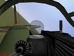 | 後部機銃手にもなれる。これはただ撃つだけだから気楽。とはいえ,調子に乗って水平尾翼を吹き飛ばしたぞ | 激しい空中戦を制して基地に帰投する。そのとき初めて垂直尾翼に被弾していることに気がつく。今日もなんとか生き残ったぜ,と気取ってみたりして |