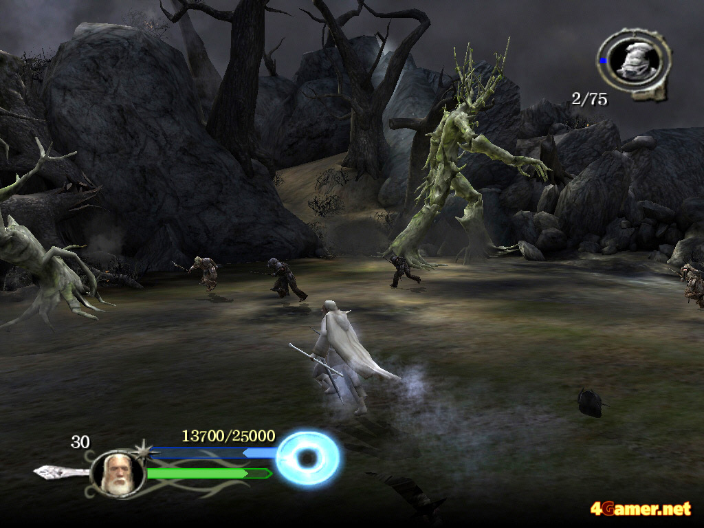 プレイヤーが操作可能なキャラクターは,ガンダルフ,アラゴルン,レゴラス,ギムリ,フロド,サムの計6人。ご覧の通り,前作「二つの塔」(コンシューマ版のみ)では登場しなかったガンダルフ,フロド,サムの新キャラもお目見えしている。