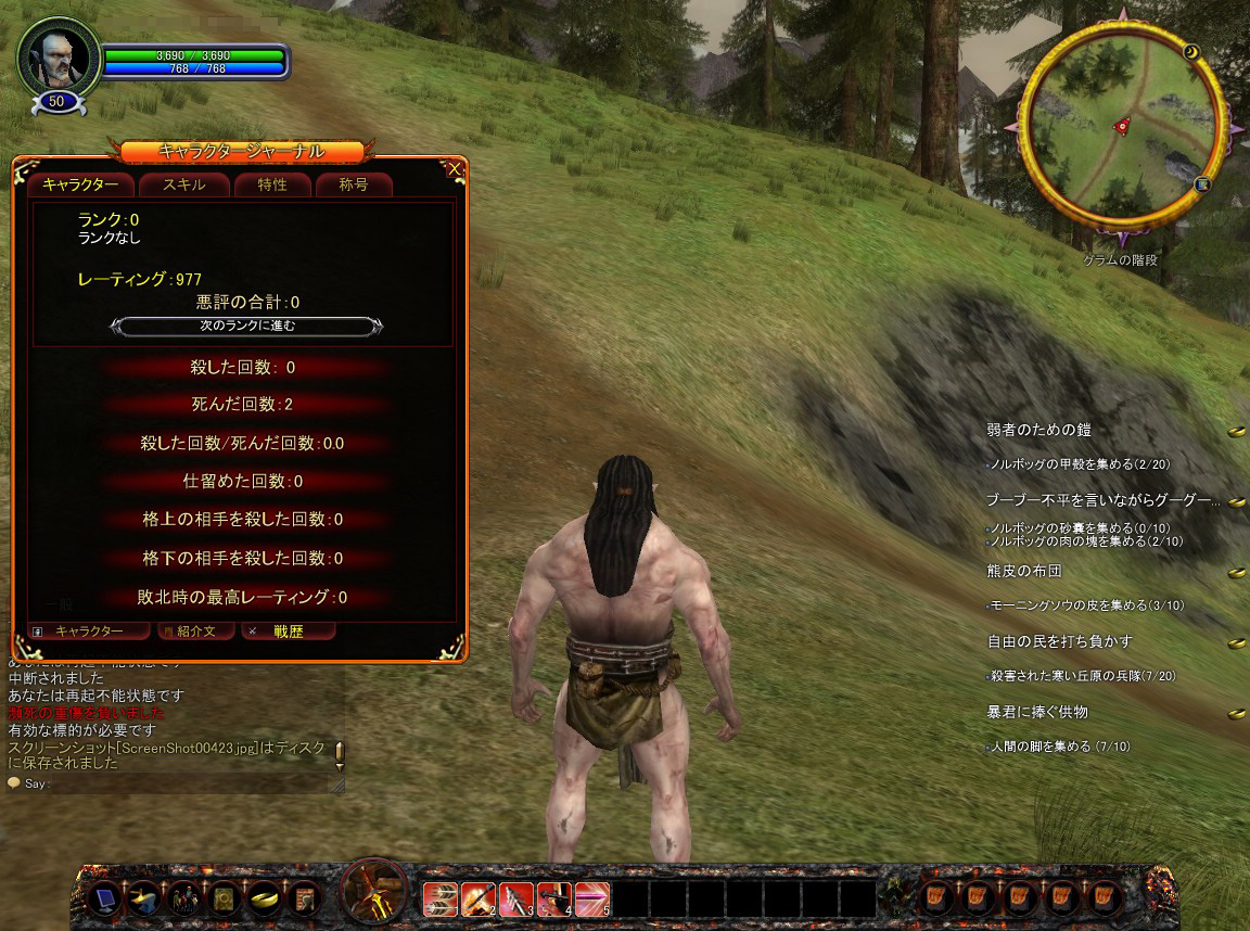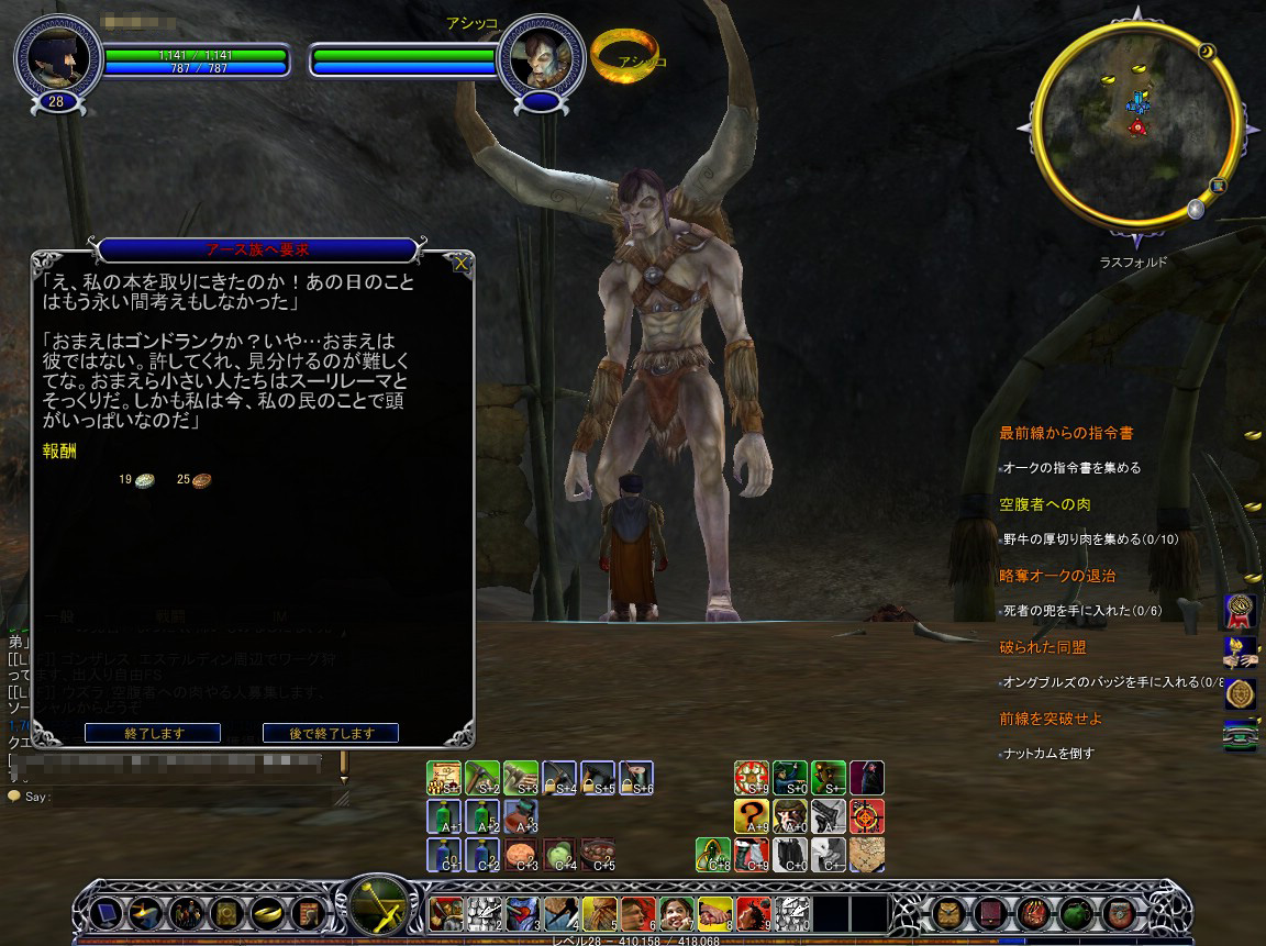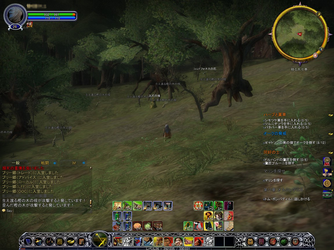 例えば先日,クエストログでは「〜のウォーロード」と表記されていたので該当地域を隅々まで探し回っていたところ,実はすぐそこにポップしていた「〜の将軍」というモンスターのことだった,ということがあった。分かってしまえば些細な不一致に過ぎないが,場合によっては何日もかけて探し回っても対象が見つからず,大げさな話をすれば,LotROをプレイすること自体を投げ出してしまう人も出かねない。プレイヤーのモチベーションを下げてしまうのは,こうした細かい部分の積み重ねであることも多いので,早急な改善が望まれる部分といえよう。