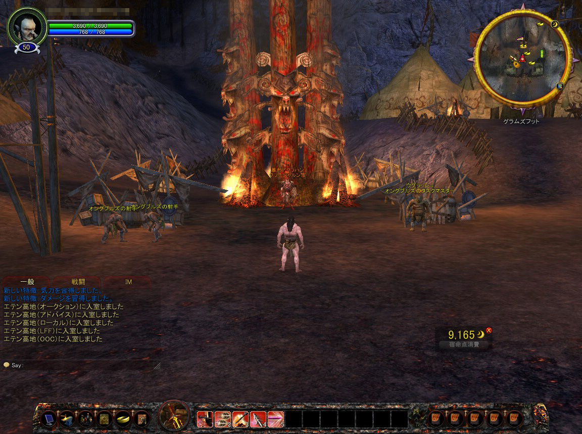 モンスタープレイでのスタート地点は,レベル40台以降のプレイヤーキャラクターを対象とする「エテン高地」。従って,このマップに集まるプレイヤーキャラクター達はいずれもレベル40〜50で,スキルの扱いにも長け,また非常に優れた武器/防具を装備をしているということである。1対1,あるいは同数のフェローシップ同士で交戦した場合,モンスター側にほとんど勝ち目はない。集団でプレイヤーを襲うにしても,より多くのモンスター仲間を募る必要があるだろう。