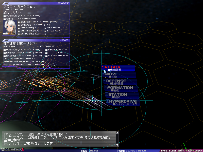 | メビウスリンク:ユニバース2は艦隊を指揮してシナリオをクリアしていくキャンペーンタイプのストラテジーだ。3Dで描画される画面上で,艦隊をリアルタイムに指揮して勝利を目指す |
