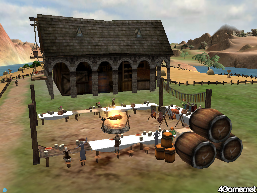 | 城壁で街を取り囲めば,外敵からの襲撃にも強固に持ち堪えられる。住民の安心度を増すという効果もある | 食料の確保にはさまざまな手段が用意されている。多角的に収穫しないと,自然災害などで大打撃を被る | 技術が上がれば,より広範囲に高い効果をもたらす施設を建てられるようになり住民の満足度も高まる |