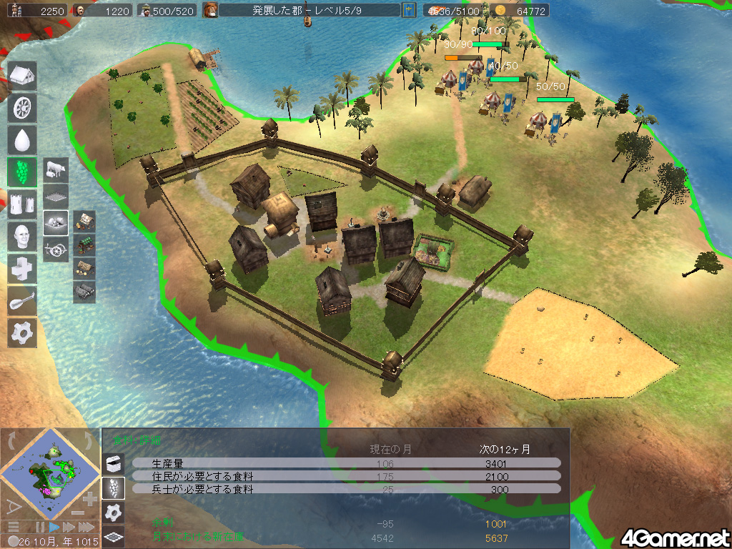 家にはレベルがあり,1レベルごとに10人ずつ収容数が増していく。低レベルの家は税収も極めて小さいため,質より量でいこうとすると,永遠の資金難に苦しみ,結果,永遠に質を追求できなくなっていくのだ。
