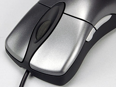 むしろ指摘すべきは,左右メインボタンの間に置かれたスクロールホイールの品質が変わってしまったことだ。チルト機能のない,シンプルなタイプのホイールボタンで,表面には細かい溝が入っており,回転させるとき,指に引っかかりやすくなっているところまでは従来版IE3.0と同じ。ホイールの材質自体にも変化はなく,基本的には同じもののようなのだが,復刻版IE3.0では,一目盛りごとの手応えが強くなりすぎてしまったきらいがある。