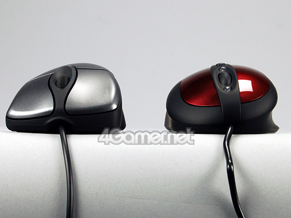 | 続いて復刻版IE3.0(左)と,4Gamerの比較用リファレンスとなる「MX510 Performance Optical Mouse」を並べてみた。ほぼ同じサイズだが,握った印象では復刻版IE3.0のほうが気持ち大きいか | |