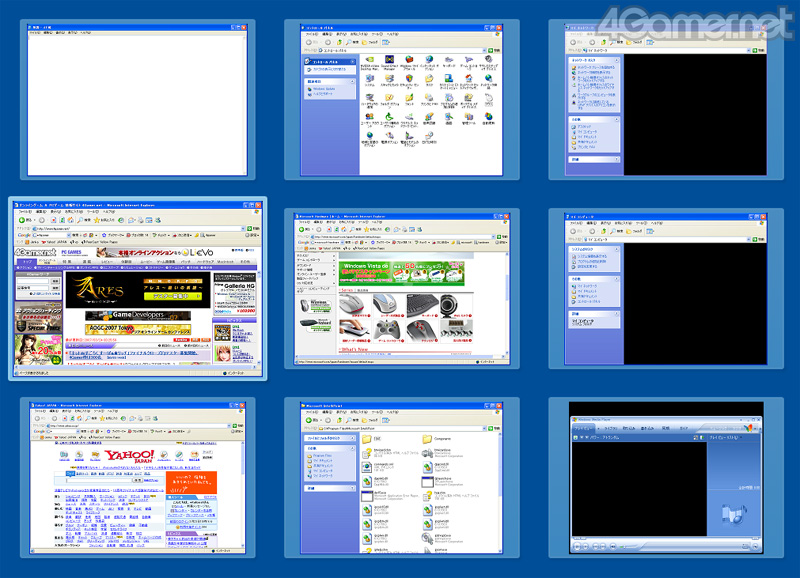 | 本文とは関係ないうえ,別にゲーム用のメリットがあるわけでもないため画面の紹介に留めるが,IntelliPoint 6.1では,現在開いているウインドウを縮小表示して選択できる「インスタントビューア」といった機能なども用意されている |