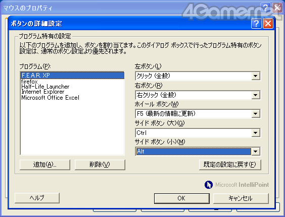 このほか,IntelliPointには,一時期から「プログラム特有のボタン割り当て」という機能が実装されるようになっている。