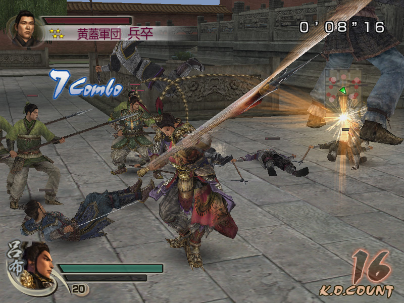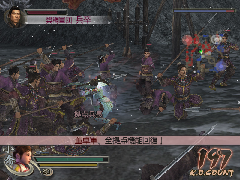| これは呂布の無双モードからの一幕。董卓の配下という立場からスタートし,裏切り,流浪をくり返してゆく | 筆者オススメの左慈様。見た目はかなりキワモノ系だが,その強さは本物。本作品での最強キャラと思われる | 「大活躍ですな」と褒められて「イーヤッホウ!」と喜んでいるわけではない。無双乱舞をズガガっと発動中なのだ |