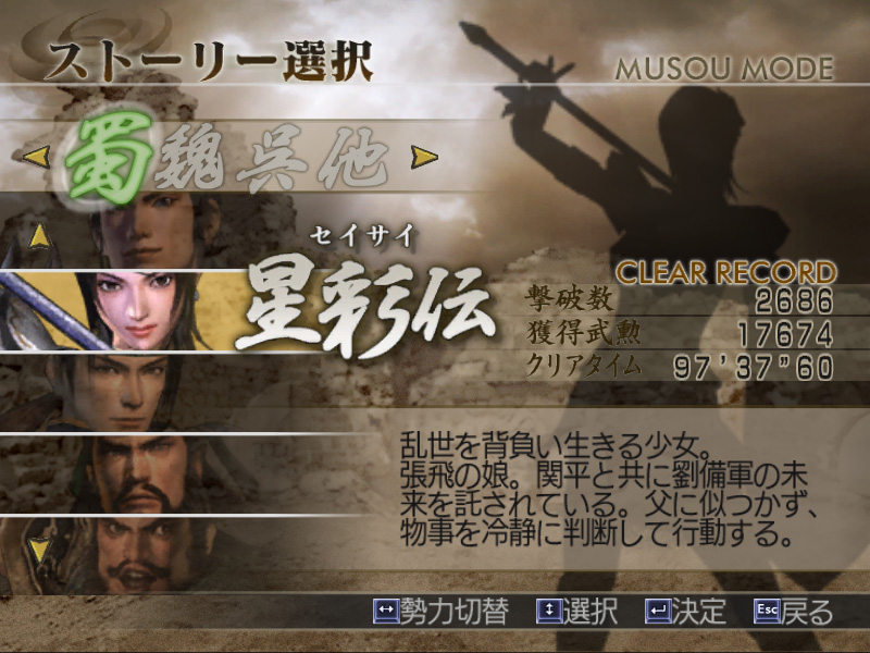 ゲームのメインモードである「無双モード」にも変更がある。前作での無双モードは,魏なら魏,蜀なら蜀といったように軍勢ごとのシナリオが設定されていたが,本作では武将ごとに異なる物語が用意されているのだ。