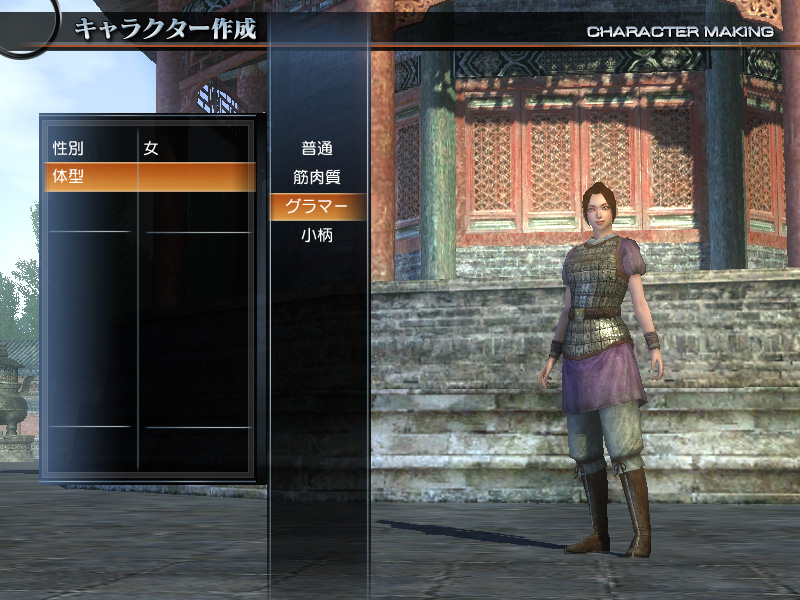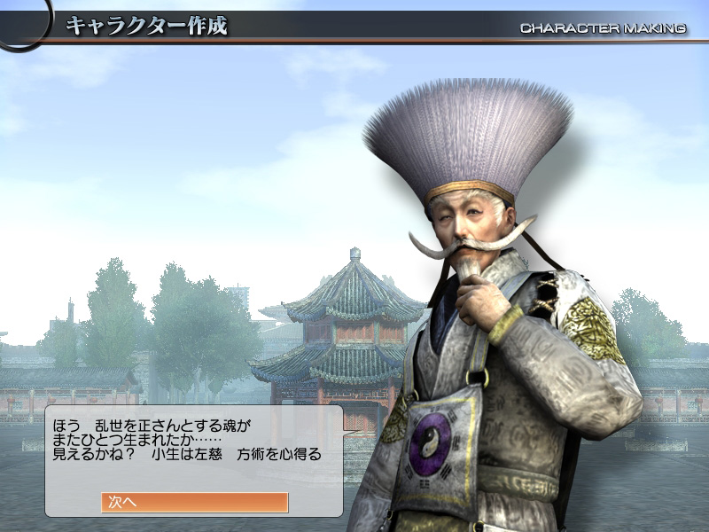 | ゲームを開始すると,三国志ではおなじみ(?)の左慈が案内役として登場 | 男女共に4種類の体格が用意されている。性別や体格の大きさによる能力の違いはないようだ | |