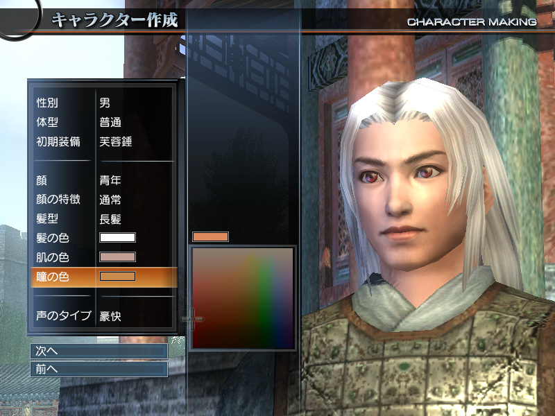 三国志の世界なので,作成できるのは東アジア系の武将のみかと思ったが,カスタマイズ次第では銀髪(?)に赤い目をした武将なども作成可能。また注目すべきは声の種類の多さだろう。選択できる声の種類は多く,最初に大まかなカテゴリーを選んで絞り込み,目的となる声を選択する。ここで選択した声は,敵将を討ち取ったりするときに使われるものだ。声の設定時にはサンプルボイスが聞けるのは,ありがたい仕様だなと感じた。