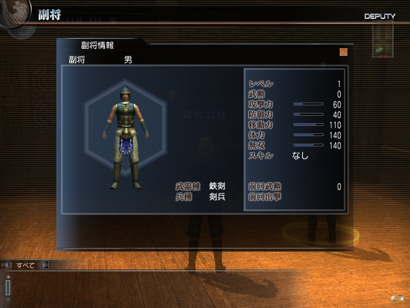 | 自室では副将の能力を確認したり,戦場で拾ったアイテムを整理したり,装備を変更したりできる。少々殺風景な部屋なので,もうちょっと飾り付けられる機能がほしいところ。壁に剣や槍を飾ったり,室内に鎧を飾るなどの要素がほしいと思えた | ||