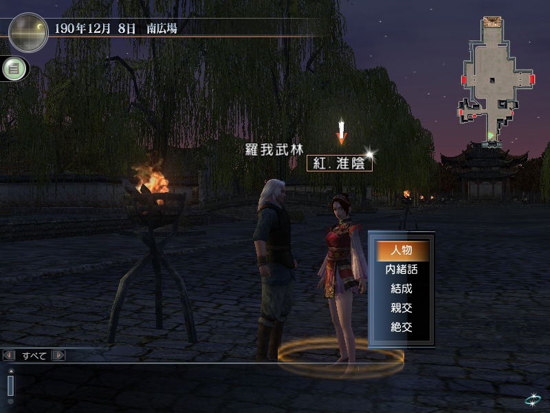 | 3Dで構成された街。ここでプレイヤーは仲間を募り,買い物をする。時間帯などによって景観が変化する点も目に楽しい。なお武器の強化などは鍛冶職人,戦場への出陣は武官に話しかけることで行える。正式サービス版ではどんなNPCが増えるのだろう。楽しみである | ||