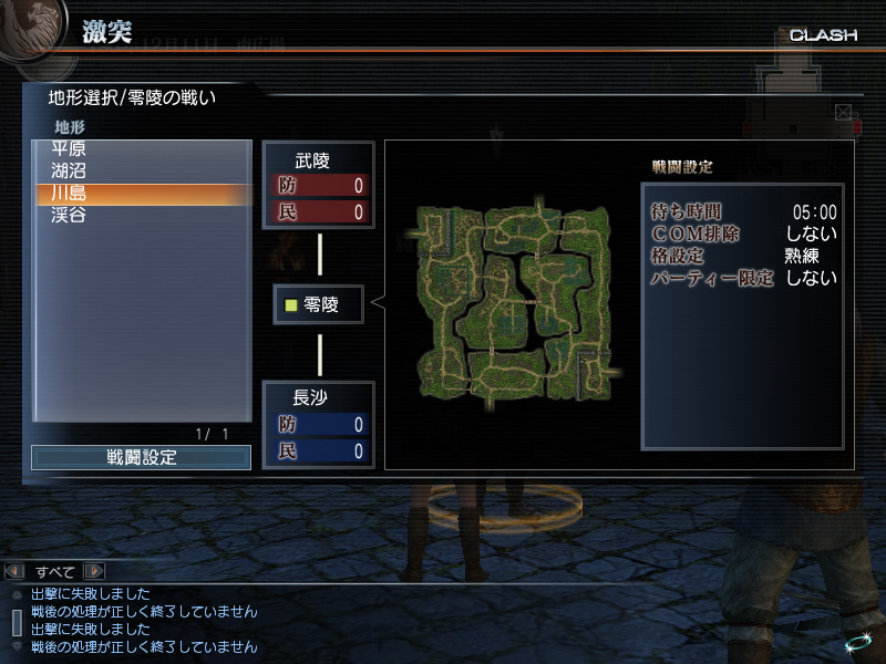 街にいる武官に話しかけて「出撃」を選ぶと,現在戦える戦場の一覧が表示され,プレイヤーは任意のマップを選んで戦場に出ることとなる。