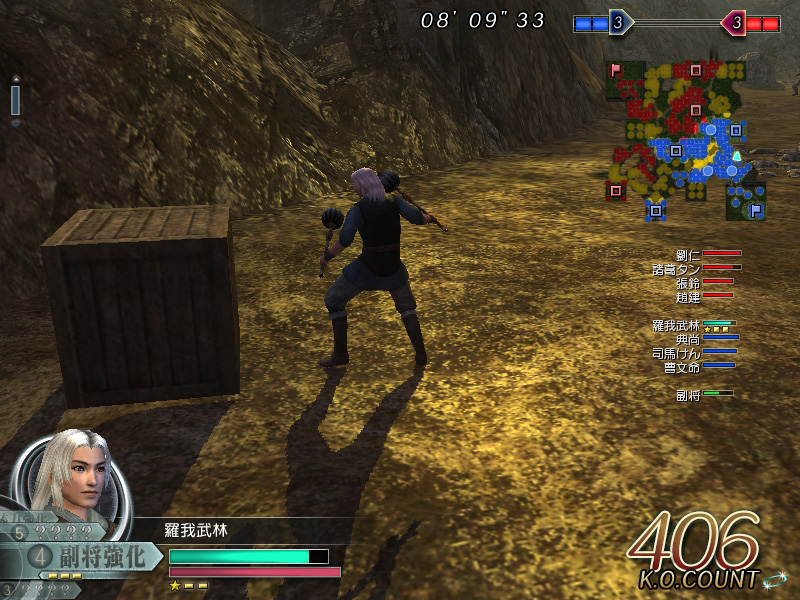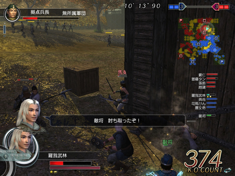なお,戦場には制限時間があり,タイムアップになってしまった場合は,倒した敵の数で決着がつく。なので砦が最後の一つになってしまっても,うまく守りきることで勝利する可能性もなくはない(かなり苦しいが)。