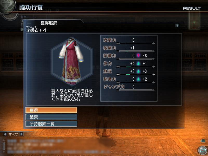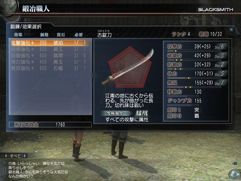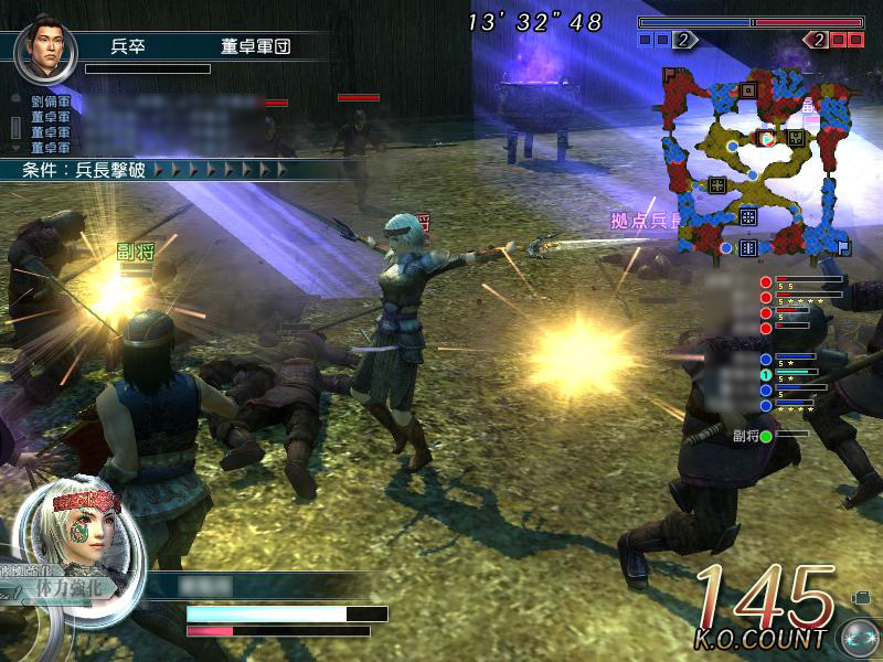 基本的には,「激突」(通常の戦闘)をえんえんとプレイしつつ,武器や防具,武器強化のための貴石を入手していき,キャラクターを強化する作業の繰り返しになるのだが,さすがはコンシューマ版でブラッシュアップされた三國無双。アクションゲームとしての出来がいいので,飽きがこない。装備によって,キャラクタータイプやプレイスタイルがかなり変化するため,新たな武器/防具を入手するたびに,新鮮な気持ちで戦えるのだ。