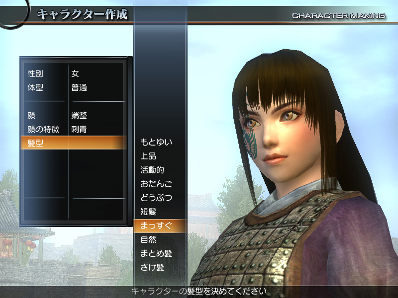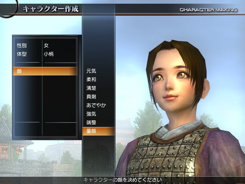 テクニカルテストに参加した人なら分かるだろうが,プレオープンβテストでは,プレイヤーが選択できるパーツが非常に増えている。髭の大男から小柄な美少女まで,実にさまざまなキャラクターが作成できるので,プレイヤーの理想に近い武将が生み出せるはずだ。