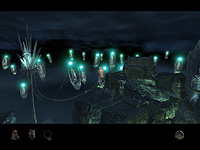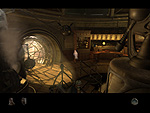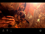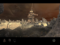 行ける場所はあらかじめ限定されていて,マウスカーソルの形が変わることでプレイヤーがそれを理解できるという,オーソドックスなシステムを採用しているので,画面上を丹念にクリックしながら進んでいくことになる。ただ,例えば曲がりくねった道を歩いて分かれ道に出た場合,自分がどちらから来たのか,とっさに分からなくなってしまうといった事態が多々あった。とくに迷路のような小路を進む場所では,恥ずかしながらかなり迷ってしまった。この辺は自由に動けたミスト ウルの方が,格段に分かりやすかったところではある。