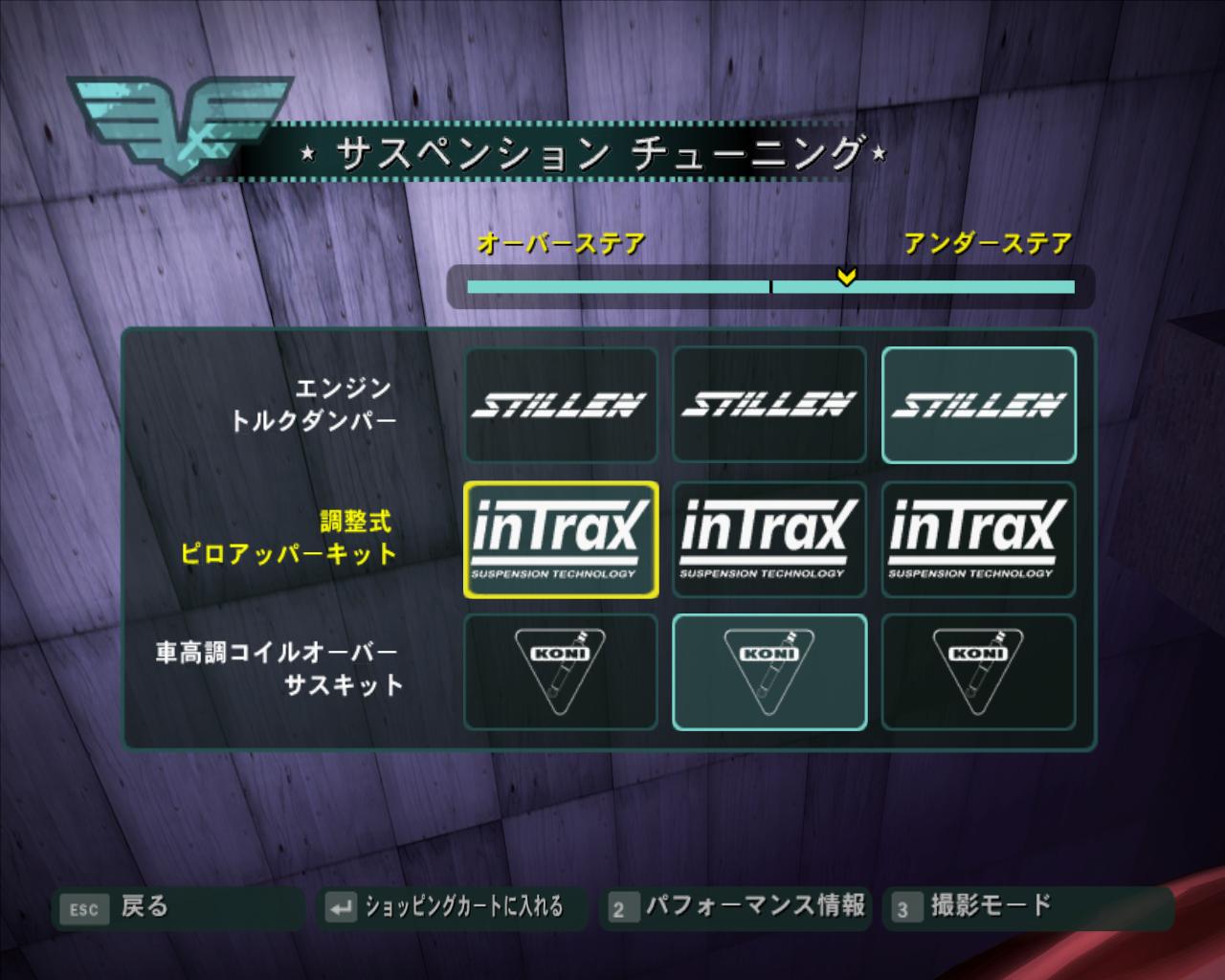 | シートに押しつけられるような加速感を味わえるニトロ。最高速を伸ばすか,加速に使うか,使い道はいろいろ | 現実では買えないような高級スポーツカーをフルチューンしたりフルエアロに仕立て上げられるのも魅力の一つ | スポコン仕様車には絶対に必要なバイナルは,レイヤーで複数を重ねられる。色の変更や位置の微調整も可能だ |