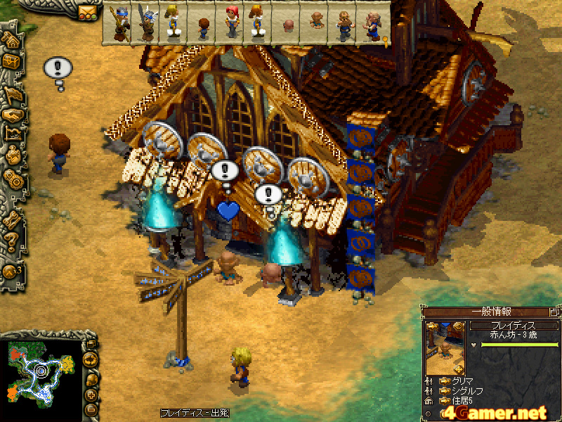 このように本作のバイキング達は,たんなるコマではなく,ゲームの主役たる愛すべき人物としてデザインされている。そのため単に"ユニット"と総称してしまうのはいささか気が引けるくらいだ。古くは「リトルコンピューターピープル」,近作では「シムピープル」などに登場する,自発的に動くキャラクター達を愛でる感覚で彼らの行動を観察するのが,本作をプレイするの大きな楽しみの一つだ。