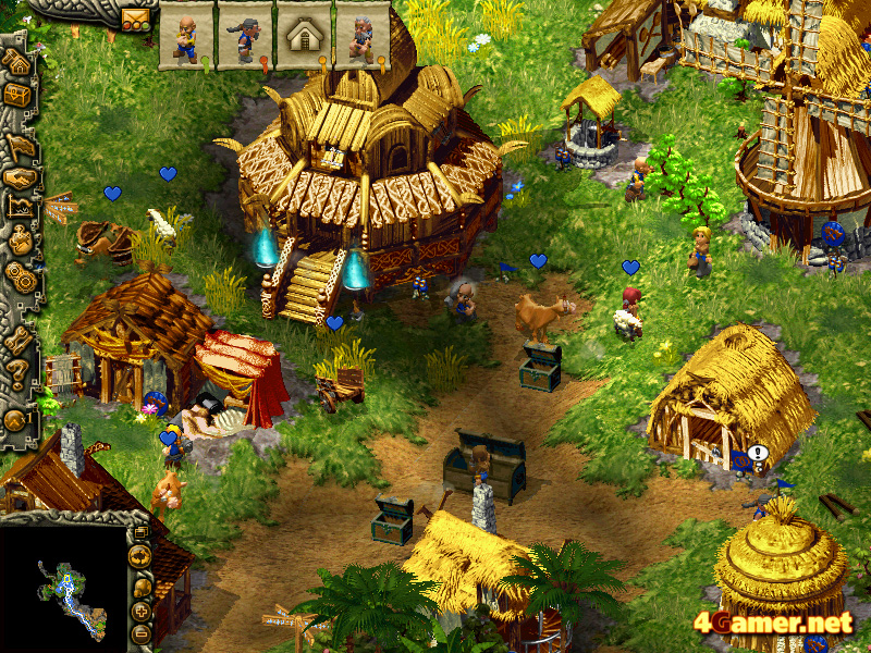 バイキング達は非常に可愛らしいグラフィックスで描かれ,一人一人異なった名前を持っている。彼らは一度指示すれば,あとは脇目もふらずに労働に従事するようなユニットではなく,おなかが減ったり,眠くなったりした場合は,仕事を一時ストップして家にご飯を食べに帰ったり,木陰で昼寝を始めたりする。このあたりの欲求を充足させてやるのもプレイヤーの仕事だ。快適な住まいや,美味しい食料を用意してあげれば,バイキング達はより効率良く働けるようになる。食事の用意や家屋の整備をしてくれる奥さんを持たせてあげれば,彼らはさらに幸せな状態で働けるようになるだろう。
