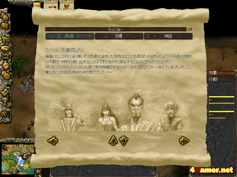 キャンペーンは全部で8ステージ。これは「カルチャーズ2」よりも若干少ないが,各ステージのプレイ時間は長いので,ボリュームに不満は感じない。これに加え,キャンペーンとは関係のないシングルシナリオが九つ用意されており,こちらは一話完結型でマップごとに異なった目的が設定されている。さらにマルチプレイ用のマップも六つあるが,マッチメイキング用の仕組みがゲームに組み込まれていないうえに,そもそもそれほどマルチプレイのために作られたゲームではないと思うので,プレイする機会は少ないそうだ。その代わり,いくつかのマルチプレイマップは,AIを相手にシングルでも遊べるようになっている。