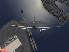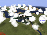 | 真珠湾で日本軍を迎撃するために飛び上がった米軍機は,わずか2機。そんなとこまで再現するなっての | 残念ながら,地上のオブジェクトはちょっと寂しい。もっと深いジャングルが見たかったような気もする | 任務を完了して帰投する爆撃中隊。だが,厳しい戦いは明日もまた待っているのだ。生き残れるだろうか? |