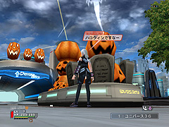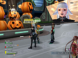 | 本作はMOタイプのアクションRPG。現在はハロウィンイベントが開催されていて,ロビーはカボチャだらけ(10/29現在) |