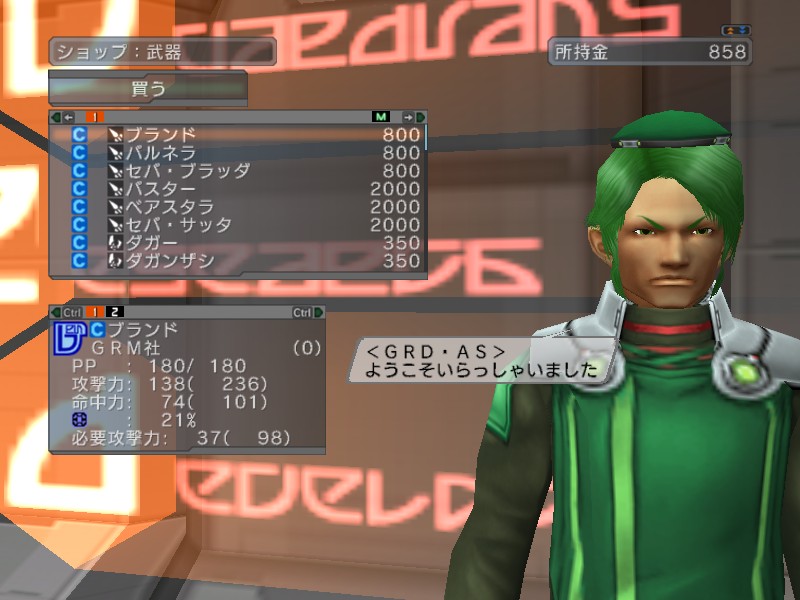 | フォトンアーツは武器屋で購入できる。買ったあと,対応する武器にリンクすることで初めて使用可能となる。リンクを忘れずに |