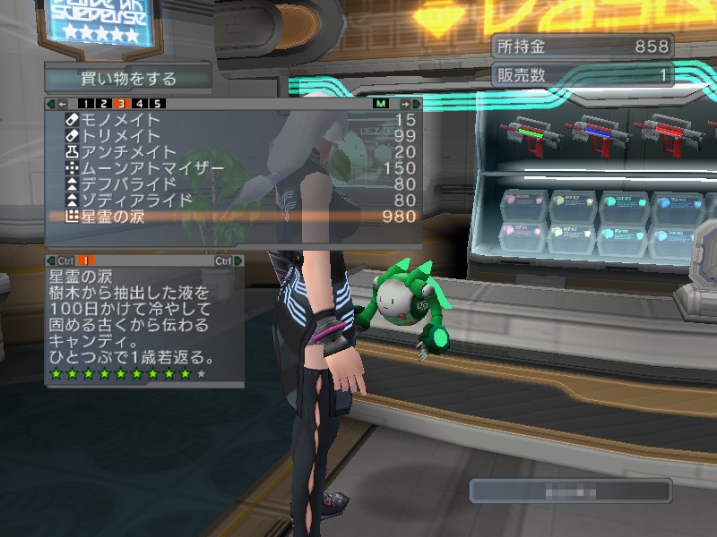 また,PSOではアイテムの処分などはわざわざお店に行って売るなりしなければならなかったが,今回はマイルームでショップ(露店のようなもの)を開くことが可能となった。ほかのプレイヤーが開いているショップの検索や,検索したショップへの移動は,上述のビジフォンから行えるのでうまく活用してほしい。