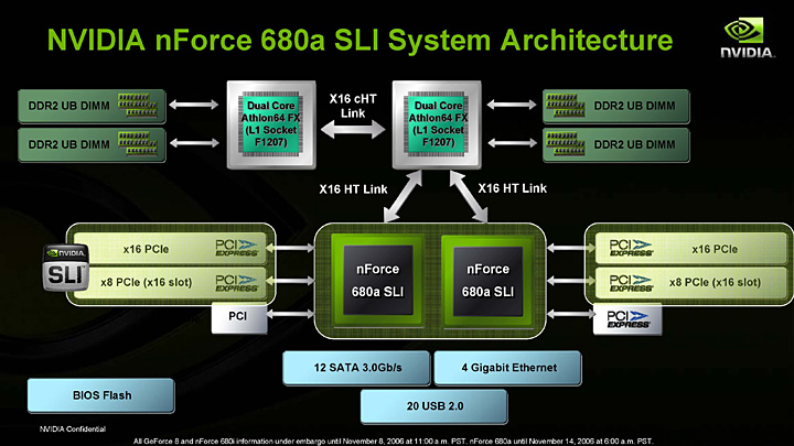 | nForce 680a SLIのブロックダイヤグラム |