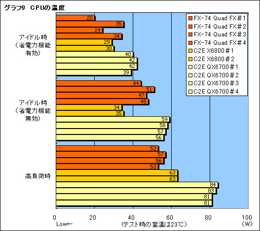 結果はグラフ9にまとめたとおりだが,Athlon 64 FX-74のコア温度が予想以上に低いと思った人は少なくないのではなかろうか。
