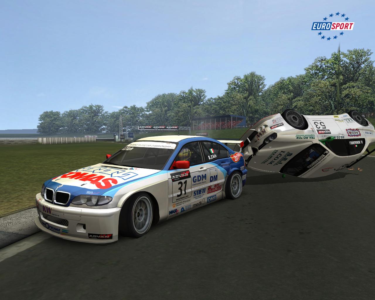 | ツーリングカーということもあり,運が悪いと横転することもある。こうなるとレース結果はあきらめるしかないだろう | リプレイ機能は,プレイ視点やテレビ中継視点のほか,カメラアングルの回転,高さの変更,ズームイン/アウトなど自由自在 | 2001年CARTシリーズで両足切断の大けがを負ったザナルディ。2005年第7ラウンド(ドイツ)で見事に優勝を果たした |