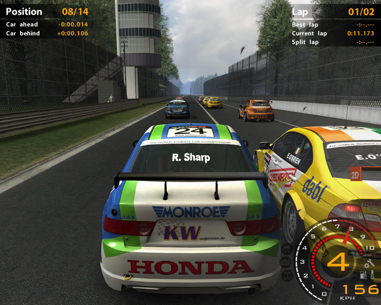 FR車のようにオーバーステアであれば,ある程度のコントロールは可能だが,タイヤのグリップを失うことでおきるアンダーステアばかりは,「出ない速度まで落とすしかない」のだ。ここがFF車の面白さでもあり難しさでもあるのだが,このへんがうまく再現されているレースシムは,意外と少ない。