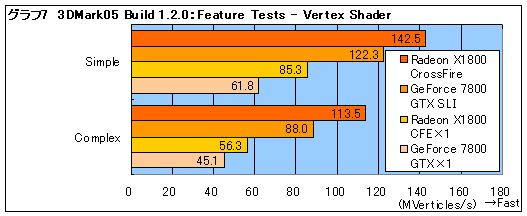 スコア自体は悪くない。だが,Radeon X1800 CrossFireが,現時点におけるATIの“めいっぱい”であるのに対し,全体的にそれよりもスコアのいいGeForce 7800 GTX SLIには,さらにその上にGeForce 7800 GTX 512が控えている。これを考えると,無責任に景気のいい話はできないというのが正直なところだ。
