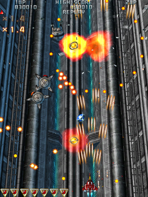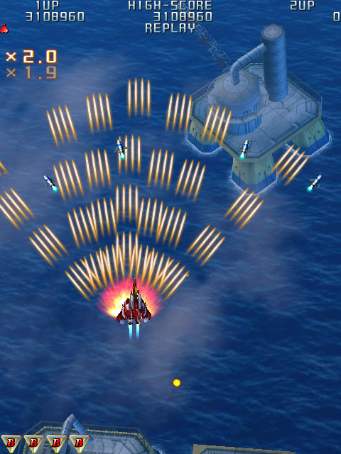 昨今の縦シューにおいて半ば有名無実化し,作品によっては平然と省略されているパワーアップシステムや,勝手に吸い込まれることが常識になりつつあるアイテム回収システムとの違いは明らかである。