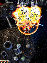 各面は「レベル」と称され,最終のレベル7をクリアするとエンディングとなる。各レベルとも,ザコ敵を蹴散らして道中を進み,最後に控えている強大なボスを倒せばクリアだ。ゲームスタート時と前半/後半の場面転換時に発進演出こそ入るが,意味深なストーリーが語られることもなく,ゲームは淡々と,そして緊張感を保ったまま続いていく。とことん硬派な展開は,決して最後まで崩れない。「攻撃と避け」という,縦シューの基礎を貫くさまには,潔さや清々しささえ感じられる。