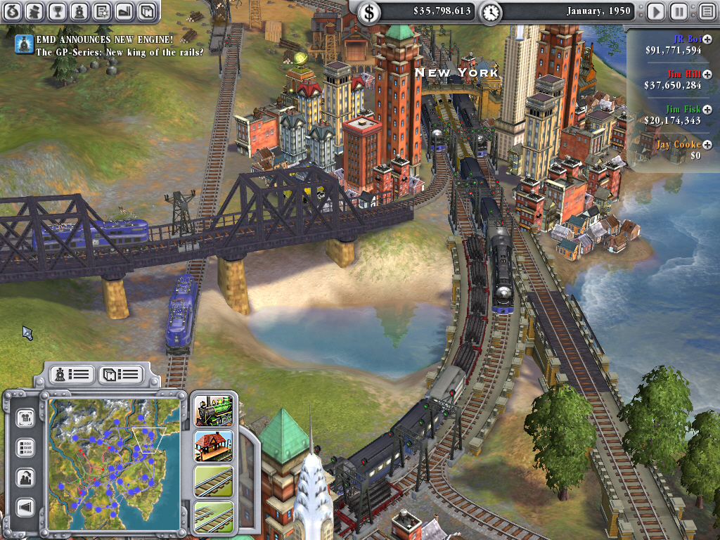 Railroads!は,1990年に登場した第一作,「Sid Meier's Railroad Tycoon」から数えて4作目に当たる。「Railroad Tycoon II」(1998年)と「Railroad Tycoon III」(2003年)は,もともとマイヤー氏が所属していたMicroproseのソフトウェア版権をGathering of Developersが買い取り,「Tropico」など箱庭系のシミュレーションゲームで定評のあるPopTop Softwareが実際の開発に当たっていた。そのため,前2作にマイヤー氏は直接には関係していない。