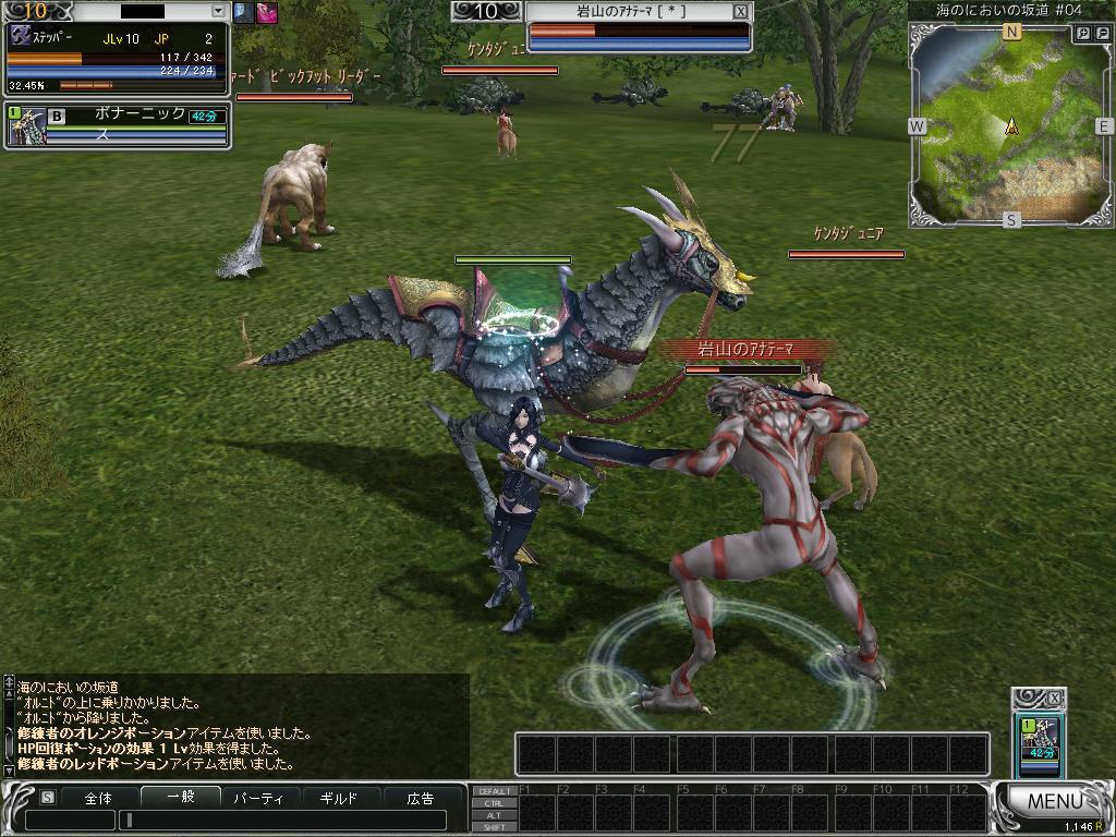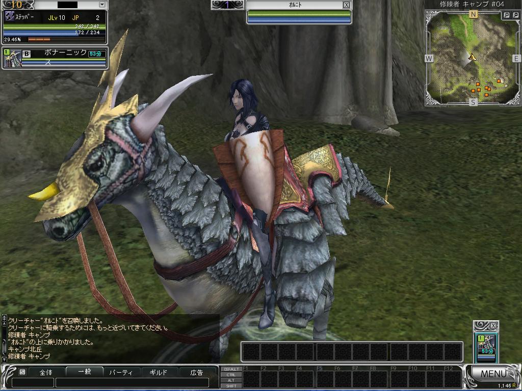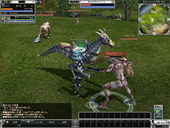 | レンタル制クリーチャーのオルニト。移動専用で攻撃できない。6時間が経過すると消える | クリーチャーの編成や復活などは,テイマーNPCのところで行う。武器,防具の装備も同様だ |