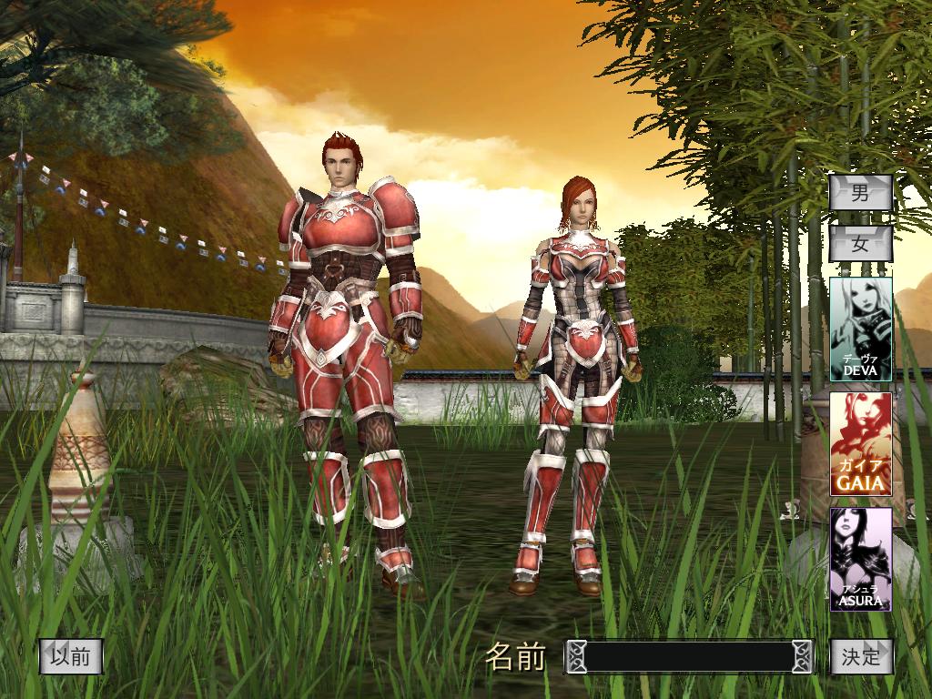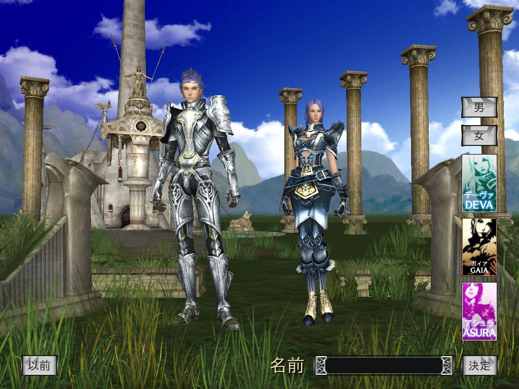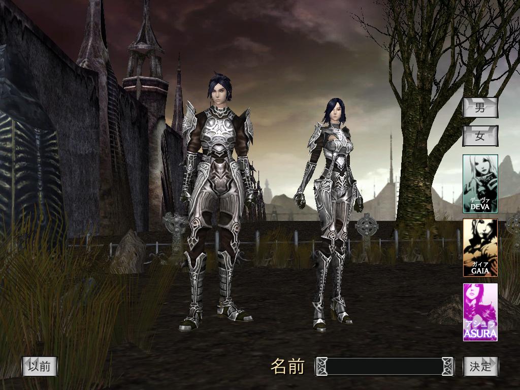 プレイヤーキャラクターとして選択できるのは,「デーヴァ」「アシュラ」「ガイア」の3種族で,それぞれ男女が用意されている。
