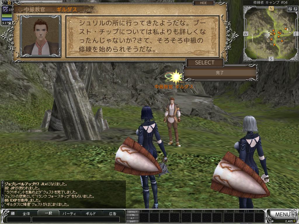 | ジョブポイントを割り振ることにより,ジョブレベルを上げ,スキルを習得していく | チュートリアルクエストでは,基本的な操作から,本作の独自システムまでを学べる | プレイヤー間の交流を促すため,チュートリアルにはパーティプレイを推奨する項目も |