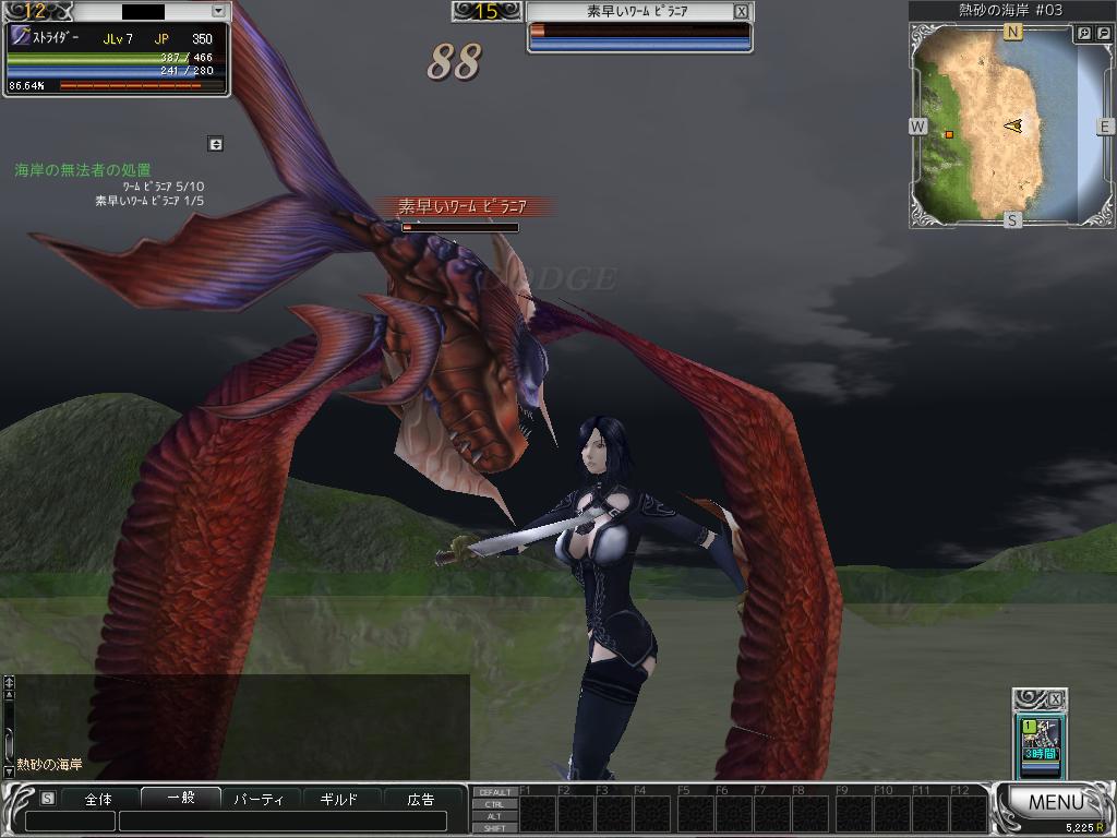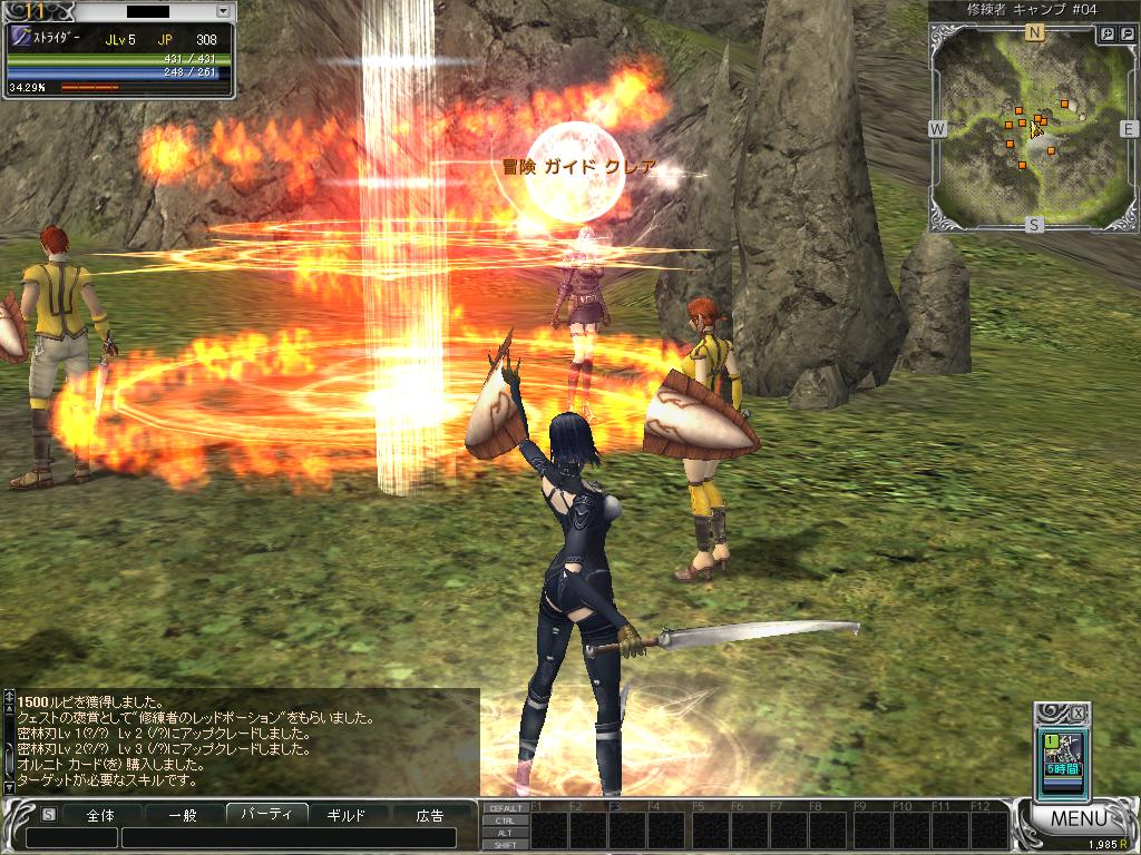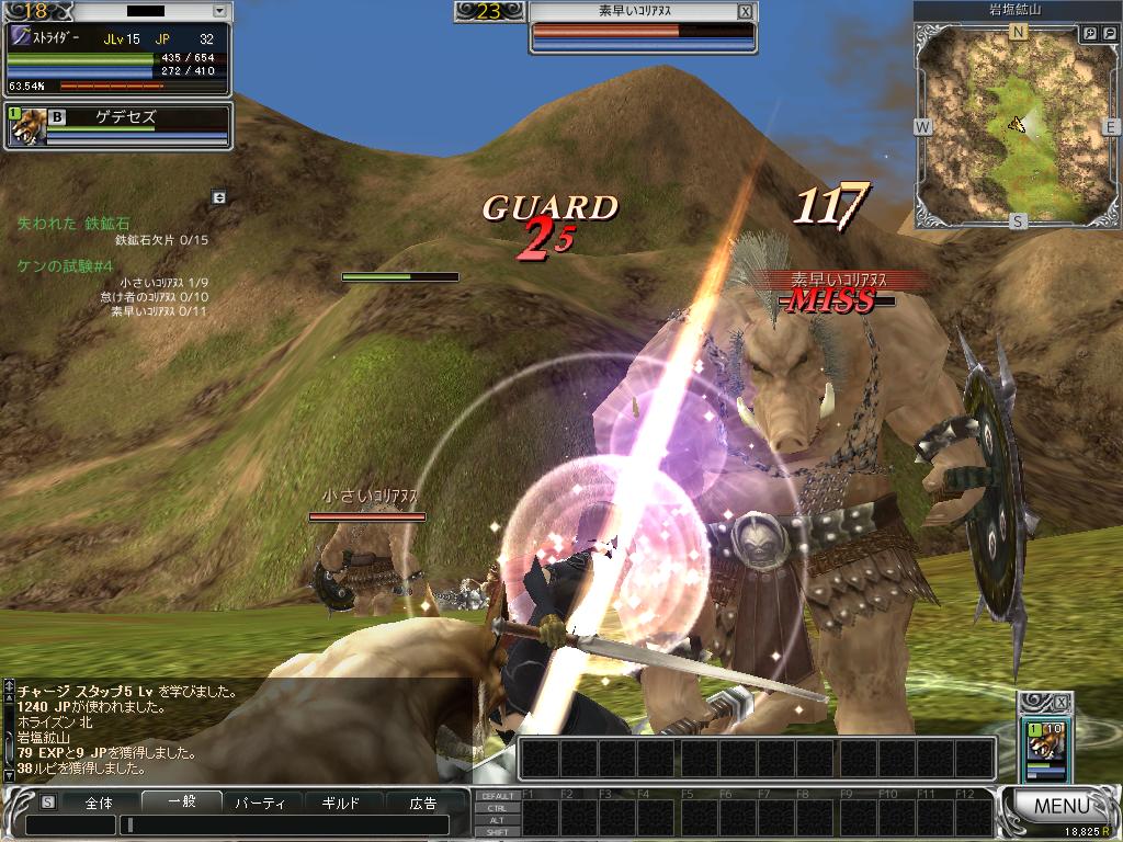 いくつか疑問を抱く仕様は残るものの,チュートリアルクエストはなかなか懇切丁寧で好印象である。続く序盤のクエスト群も同様なのだが,「○○を何匹退治する」「△△を集める」といった単調なものではあるにせよ,ノルマをクリアするためにモンスターを狩り続けていれば,次のクエストに必要なレベルに達している場合が多い。